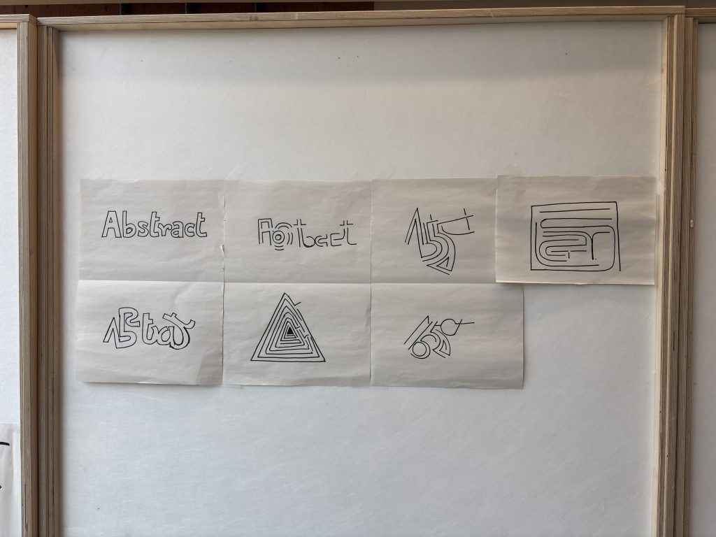 I later experimented with typography and carried out the same process. I picked the word ‘abstract’ and tweaked the letters to create a step into making it more abstract. I took the letters and placed them in different ways, devising different ways to write and read. The word became unreadable the more abstract it became.